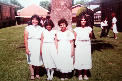 I have no idea what I was doing... looks like I was fiddling with a string. I have no idea who the girl is standing to the right of you, but the one next to me is my cousin.