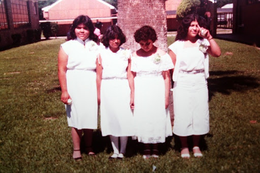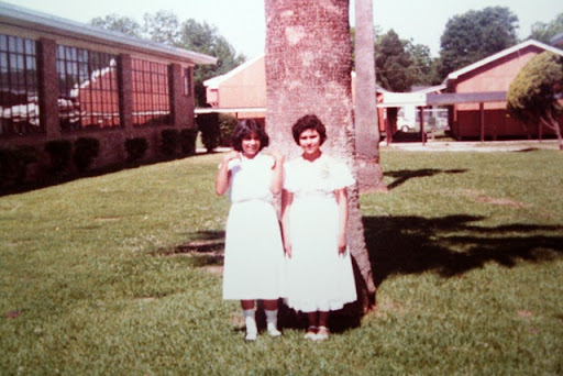 I have no idea what I was doing... looks like I was fiddling with a string. I have no idea who the girl is standing to the right of you, but the one next to me is my cousin.